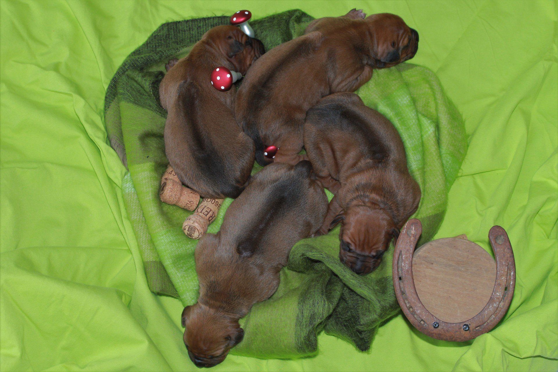 Geboren am 20. Januar 2019 brachten 2 kleine Hündinnen und 2 kleine Rüden Glück ins Haus!