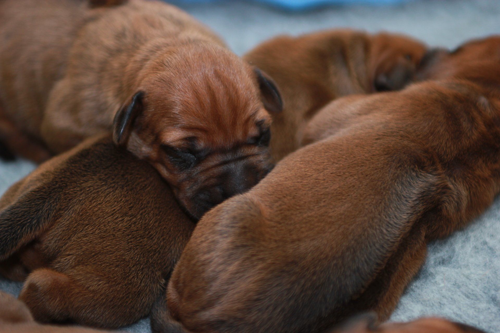 Es ist viel los in der Welpenkiste. Zwischen schlafen und nuckeln findet sich jetzt auch schon ein bisschen Zeit für spielen, tapsen und knurren.